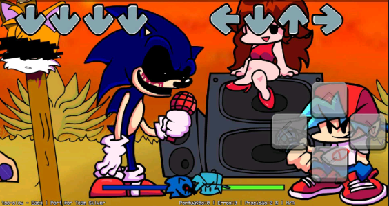 1. 音乐与速度的完美结合:游戏将索尼克的快速奔跑与FNF(Friday Night Funkin')系列的音乐对战机制相结合,玩家需在节奏中跳跃、冲刺,以躲避障碍和击败敌人。