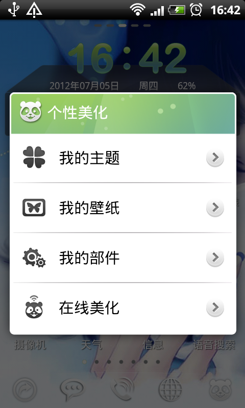 4. 系统工具集成:常用的手机状态显示、亮度和wifi调节开关等系统工具被集成在桌面中,方便用户快速访问。