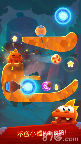 2. 物理益智:利用物理原理,如重力、弹力等,巧妙切割绳索,引导糖果等物品落入小怪兽的口中,解决各种难题。