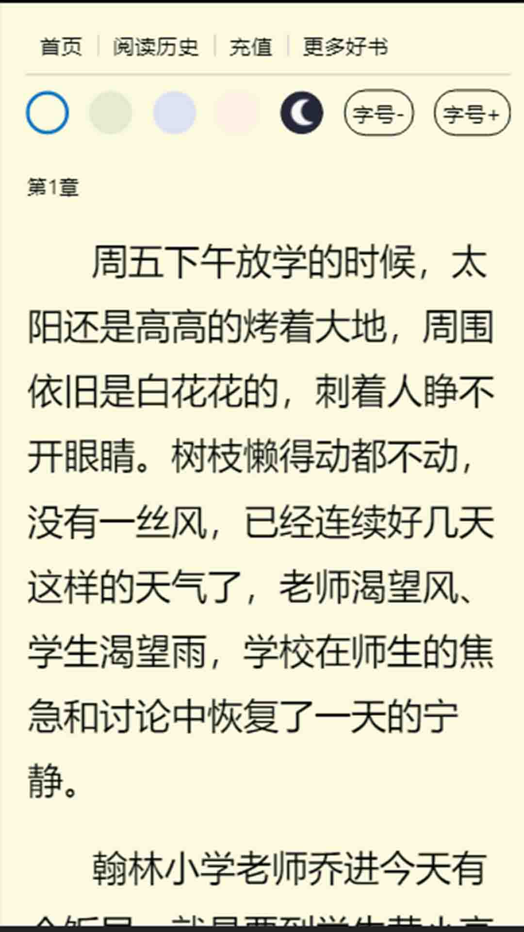 点击书籍封面进入详情页,选择章节开始阅读,支持滑动翻页和点击翻页。