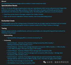 各专业之间的联动变得更加紧密。例如,工程学与裁缝的结合,能制作出带有特殊工程学效果的布甲装备,增加移动速度和技能冷却缩减。珠宝加工与锻造的联动,让镶嵌宝石后的装备属性更上一层楼,无论是武器还是防具,都能通过宝石搭配获得独特优势。这种联动优化,让玩家在选择专业时有了更多策略性考量。