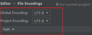 4. 在“global encoding”和“project encoding”下拉菜单中,均选择“utf-8”。