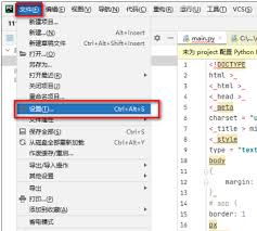2. 点击菜单栏中的“file”,选择“settings”(windows/linux)或“pycharm”>“preferences”(mac)。